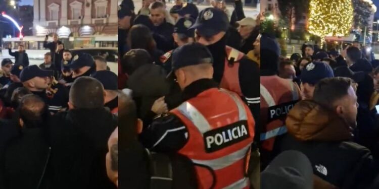 Tensione në protestë: Adriatik Lapaj bie në tokë