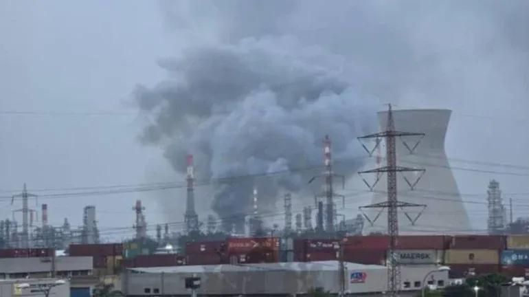 Pamjet tregojnë tym që ngrihet nga rafineritë e naftës në Haifa pas sulmit më të fundit me raketa balistike nga Irani.
