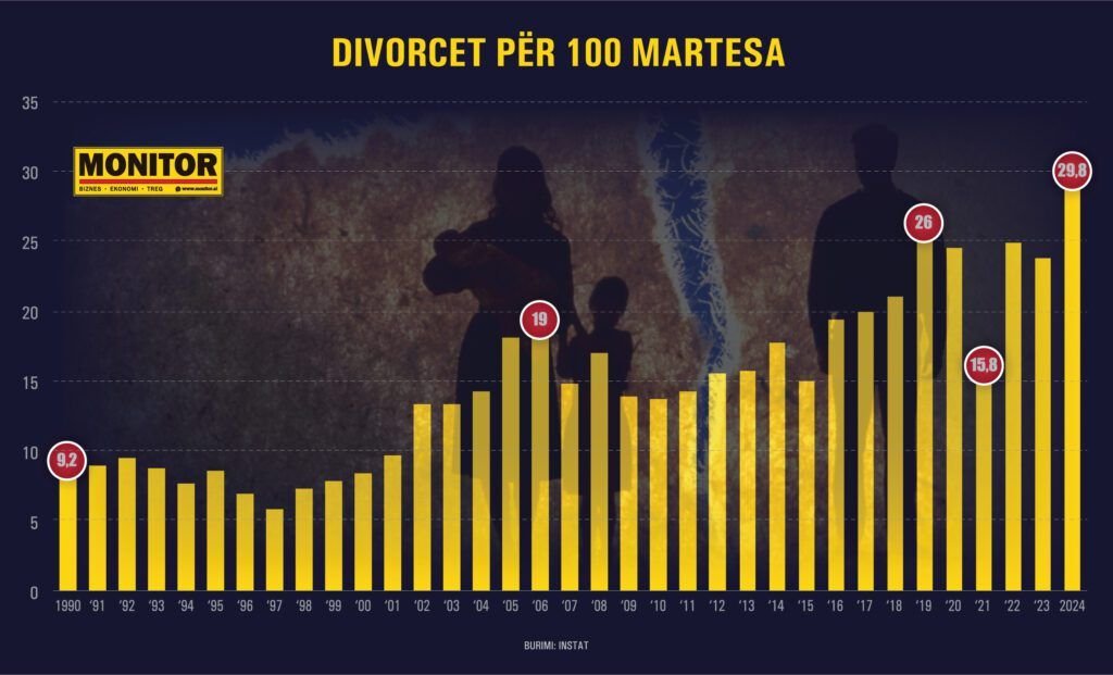 Raportimi më i fundit tregon se viti 2024 shënon një rekord absolut prej 29.8 divorceve për 1,000 martesa, niveli më i lartë i regjistruar ndonjëherë në vend. Analistët socio-demografikë e shohin këtë jo vetëm si një ndryshim statistikor, por si një transformim të thellë të strukturave sociale.