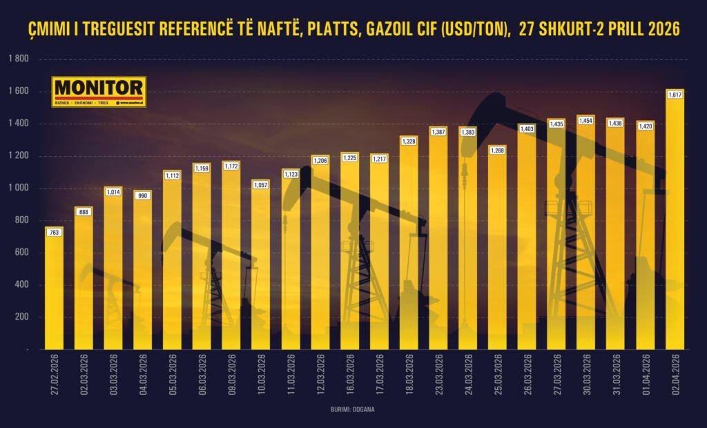 Çmimi i naftës referencë ndërkombëtare, Platts Gasoil CIF (USD/TON), i cili përdoret në tregtinë globale, arriti në 1617 dollarë për ton ditën e djeshme. Ky çmim do të reflektohet sot në doganat e vendit, sipas burimeve doganore. Bazuar në këtë vlerë, taksa për naftën arrin vetëm për taksa doganore 105 lekë për litër. Ky çmim shërben gjithashtu si bazë për zhdoganimin e naftës nga operatorët vendas, sipas shpjegimeve të tyre, pavarësisht momentit të blerjes.