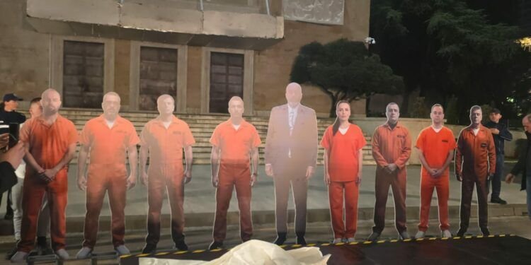 Në trotuarin përballë godinës së Kryeministrisë, ata vendosën disa manekina, të cilët simbolizonin socialistët e hetuar dhe të burgosur nga SPAK. Mes tyre ishte edhe Belinda Balluku, zv/kryeministrja e pezulluar nga Gjykata.