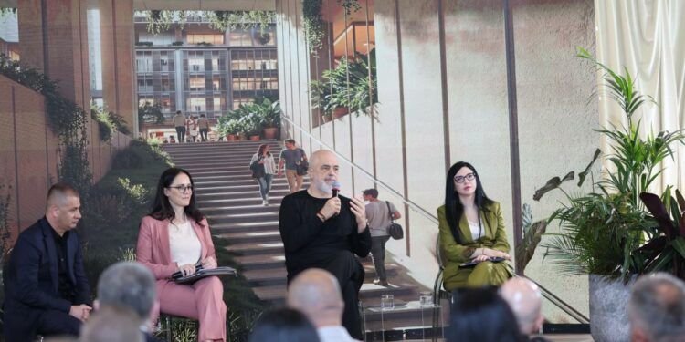 Rama promovon kompleksin e ndërtimit në Tiranë, kundërpërgjigjet akuzave për lidhje me krimin.