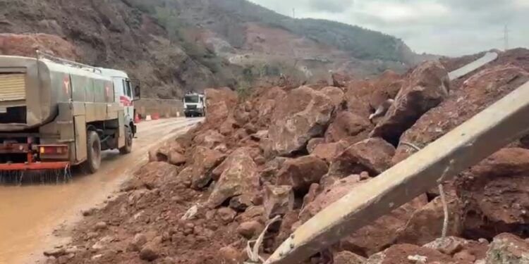 Aktualisht, vetëm një korsi e gjysmë e rrugës është e hapur, ndërsa një gur gjigant ndodhet ende mbi asfalt, duke përbërë rrezik real për drejtuesit e mjeteve.