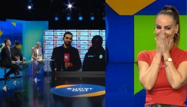 Në momentin kur futbollisti u shfaq për t’u intervistuar në emisionin “Super Gol”, pamja e tij nuk arrinte të dallohej qartë. Kjo situatë ka shkaktuar të qeshura në mes të drejtueses Hygera Sako dhe panelistëve Ardi Behari, Gert Haxhiu dhe Klajdi Kola.