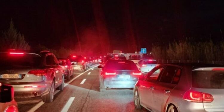 Trafiku ka krijuar një radhë automjetesh prej më shumë se 4 kilometrash, teksa një numër i madh mjetesh ka mbetur i bllokuar në të dyja drejtimet e qarkullimit.