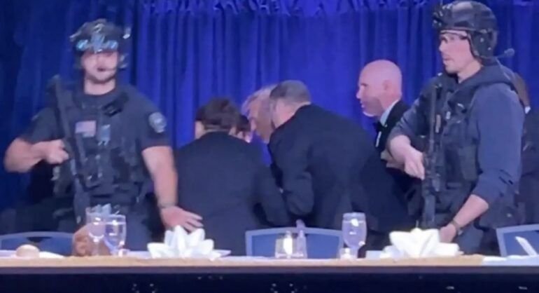 Presidenti Donald Trump u evakuua me urgjencë pasi u dëgjuan të shtëna me armë zjarri në hotelin ku po mbahej darka e korrespondentëve të Shtëpisë së Bardhë, të shtunën në mbrëmje.